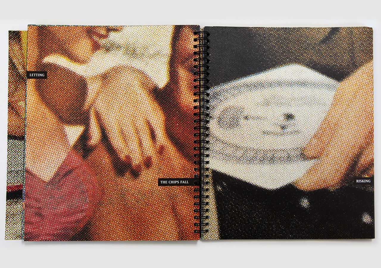 The book continues my interest in using large halftone dots in my books and pictures. I first became interested in them, and used them extensively, during my years in graduate school in the seventies. During that time I was learning how to make lith film for offset lithography at the Viusal Studies Workshop in Rochester, NY, and spent many hours looking at halftone negatives on a darkroom light table. I also trained making color separations when I was working with Harry Christen at Christen Litho Lab, a color separation shop in Rochester.