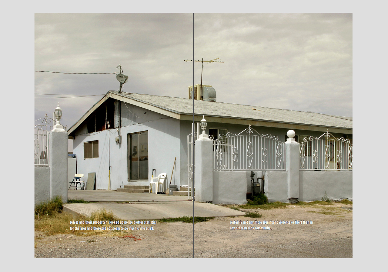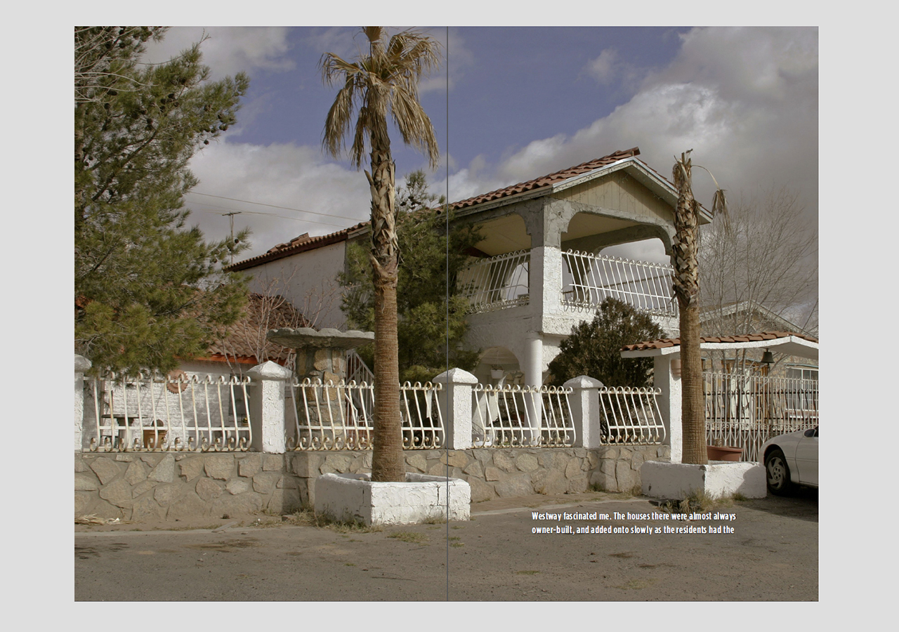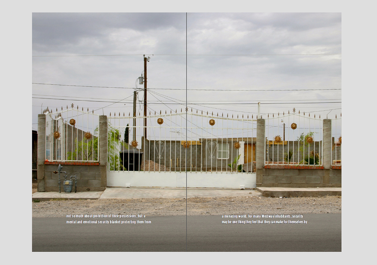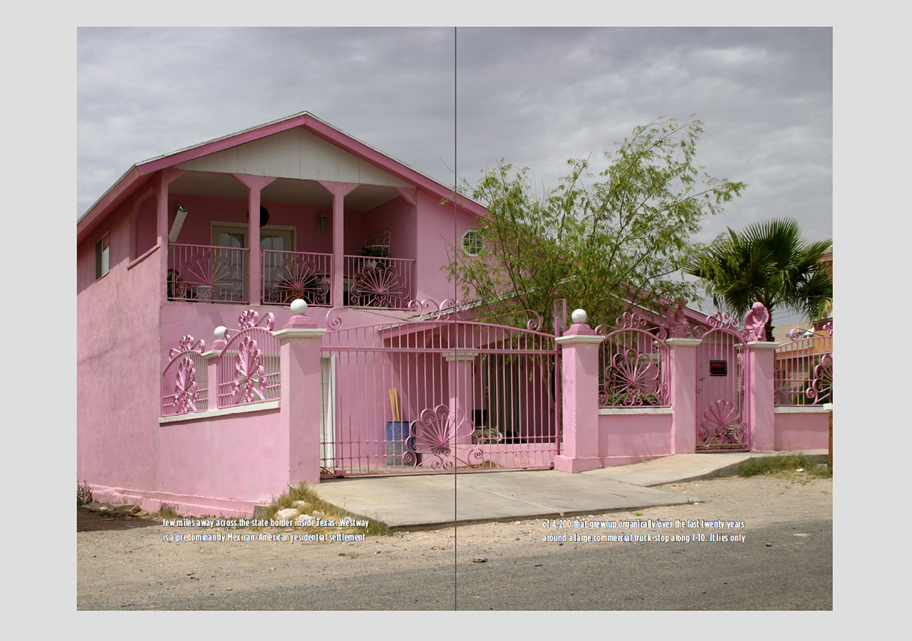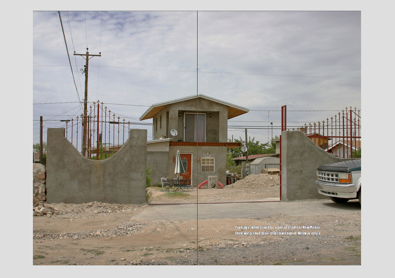 "Years ago, when I lived in New Mexico for a period of time, there was a small blue-collar town named Westway only a few miles away, across the state border in Texas. Westway is a predominantly Mexican-American residential settlement of 4,200 that grew up organically over the last twenty years around a large commercial truck-stop along I-10. It lies only about three quarters of a mile from the Rio Grande and about nine miles from the Mexican border.