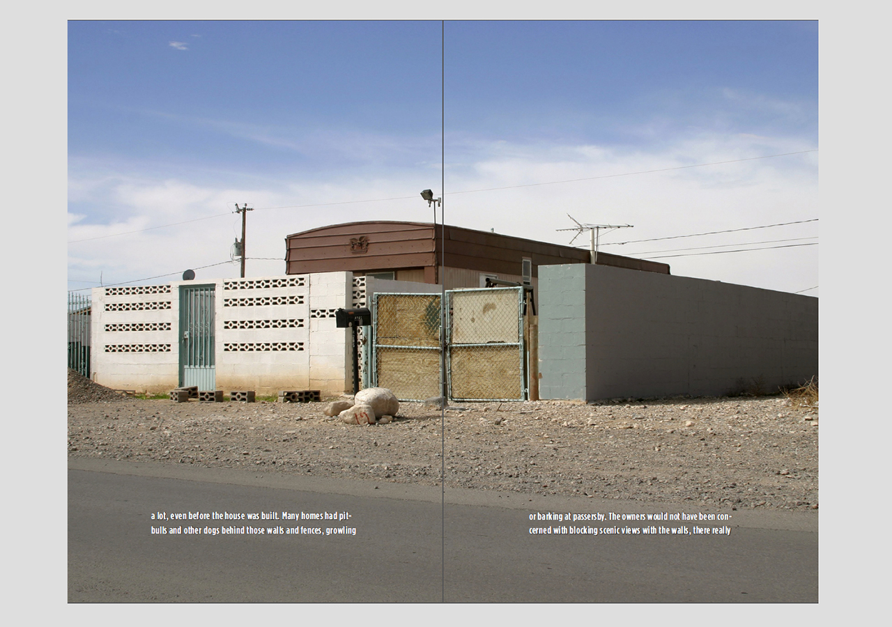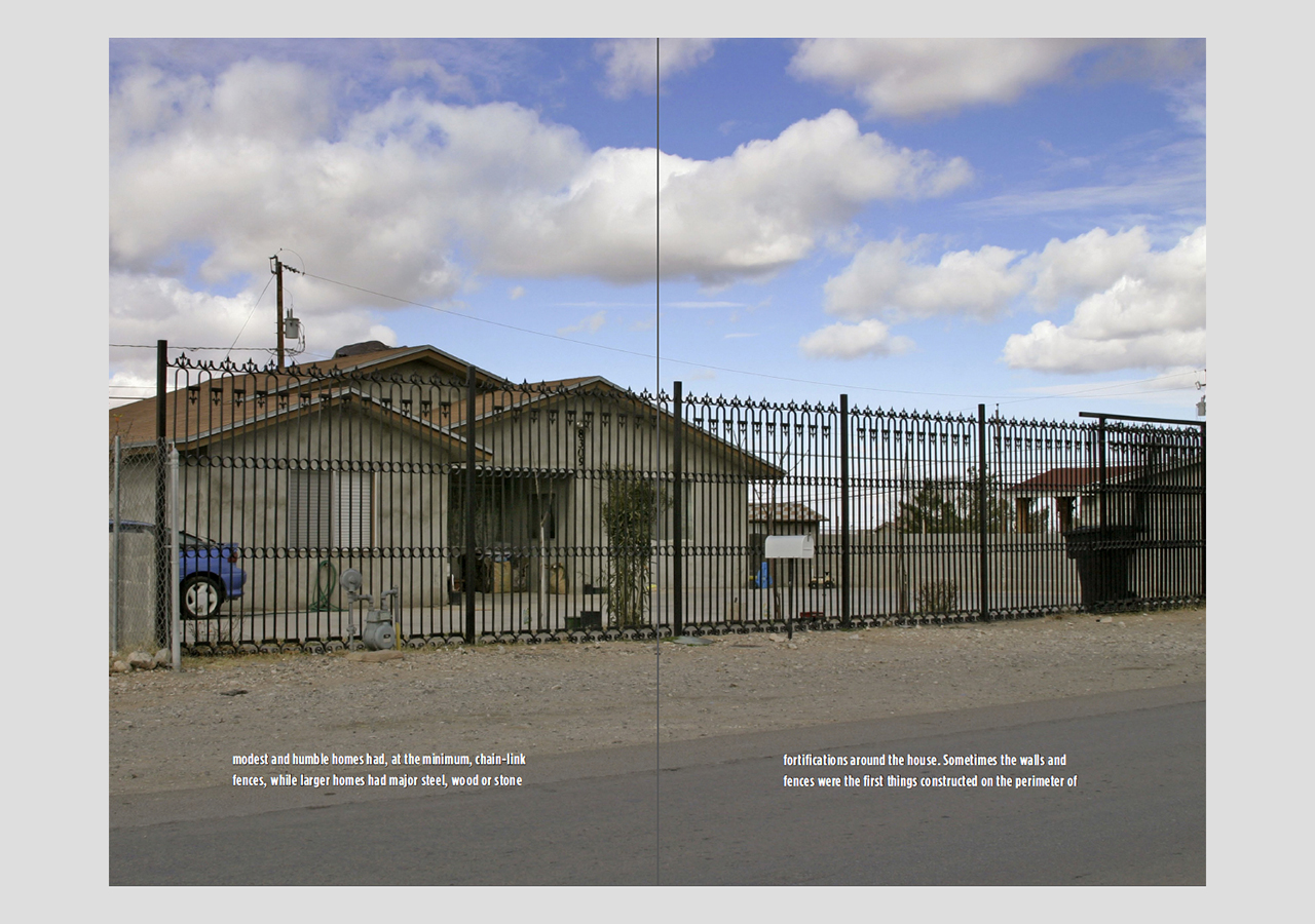 One thing that was common to all of the houses were the significant surrounding walls and fences. Even the most modest and humble homes had at the minimum chain-link fences, while larger homes had major steel, wood or stone fortifications around the house. Sometimes the walls and fences were the first things constructed on the perimeter of a lot, even before the house was built. Many homes had pit-bulls and other dogs behind those walls and fences, growling or barking at passersby. The owners would not be concerned with blocking scenic views with the walls, there really isn’t much of a view in Westway to block: it’s dusty and dry scrub desert along an interstate highway.