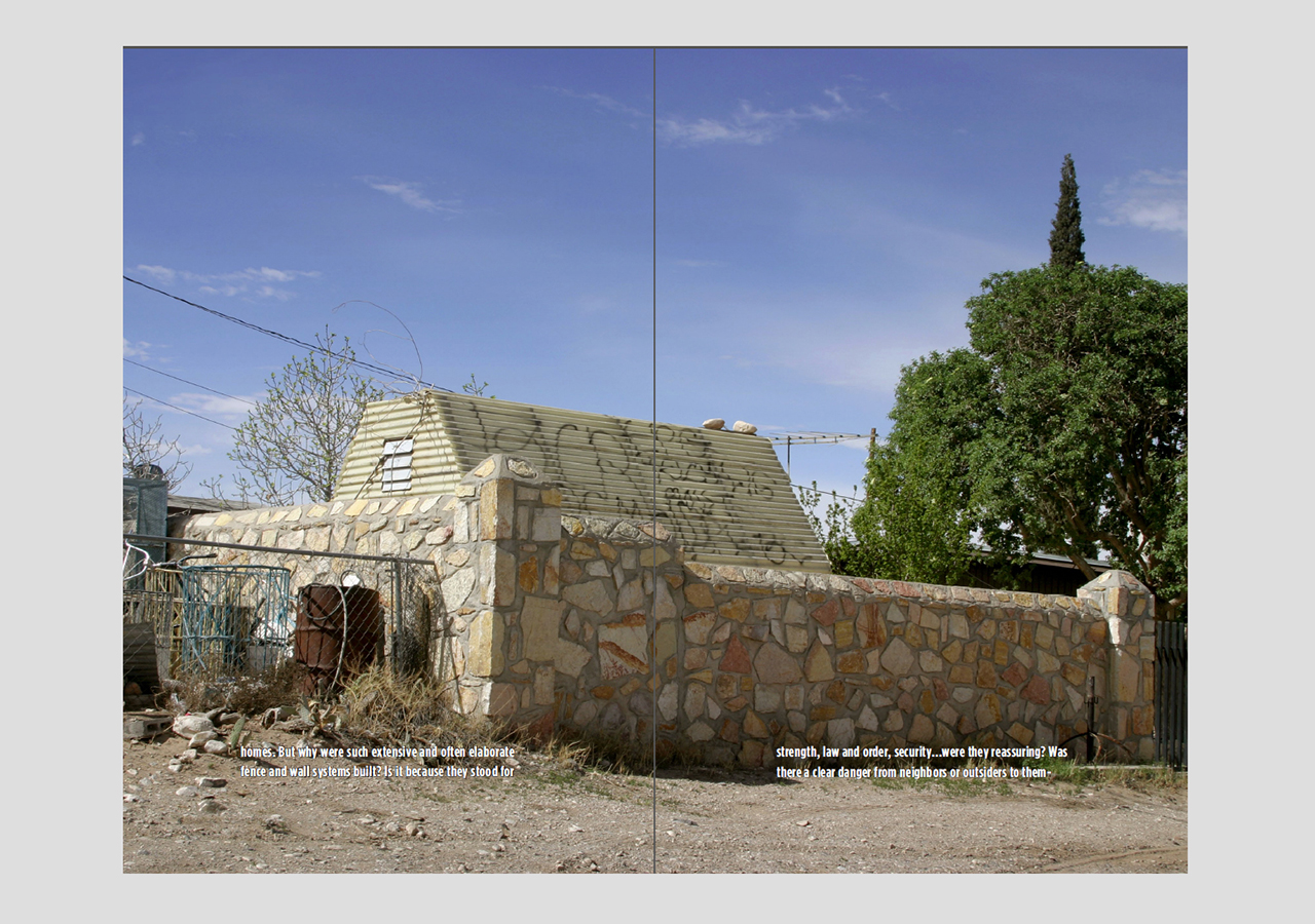 Though these were not wealthy folks (there are almost no paved roads in Westway) they took great pride in their homes. But why were such extensive and often elaborate fence and wall systems built? Is it because they stood for strength, law and order, security…were they reassuring? Was there a clear danger from neighbors or outsiders to themselves and their property? I looked up police blotter reports for the area and there did not seem to be much crime at all, certainly not any more significant violence or theft than in any other nearby community.