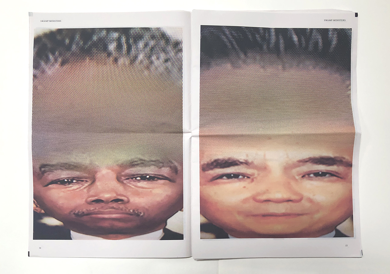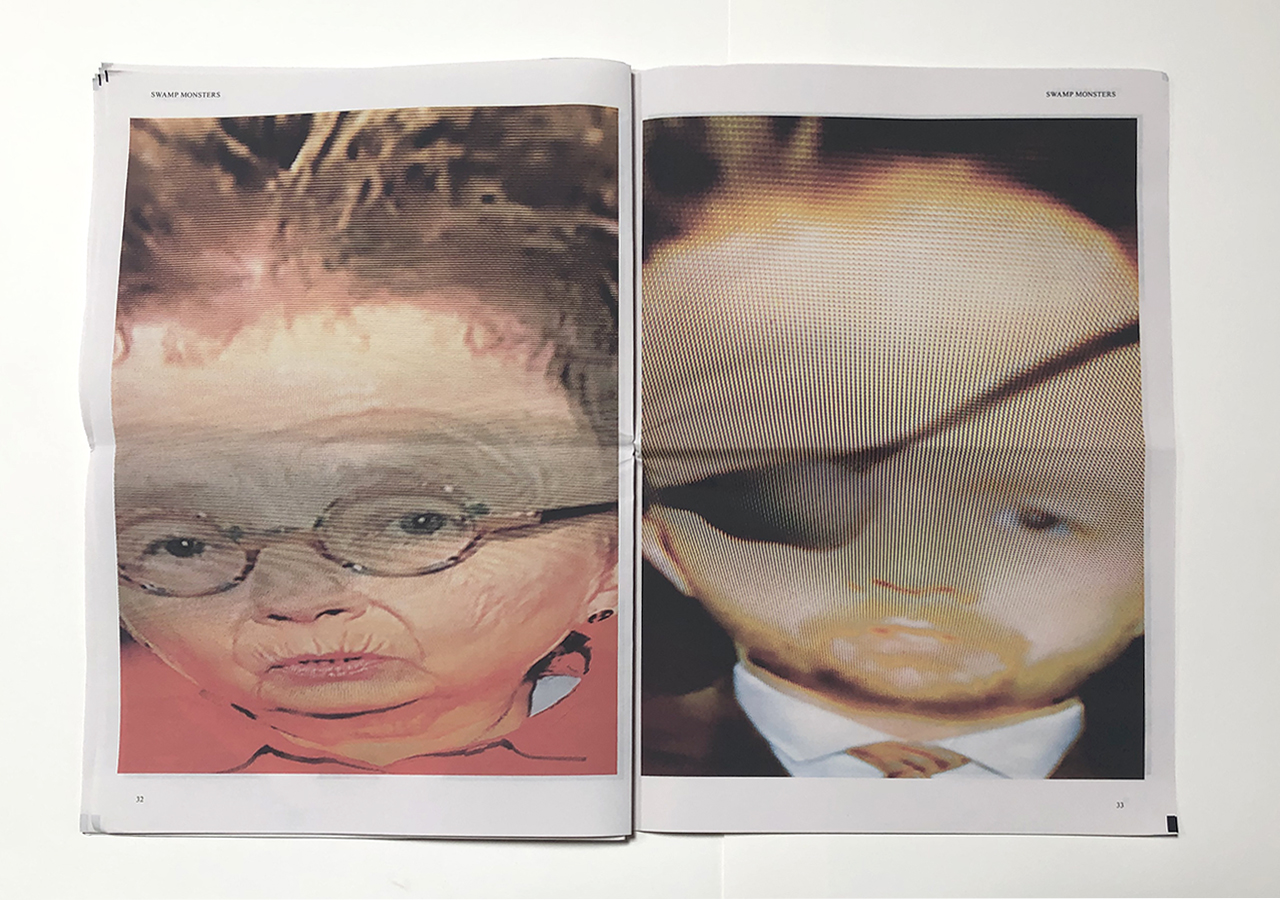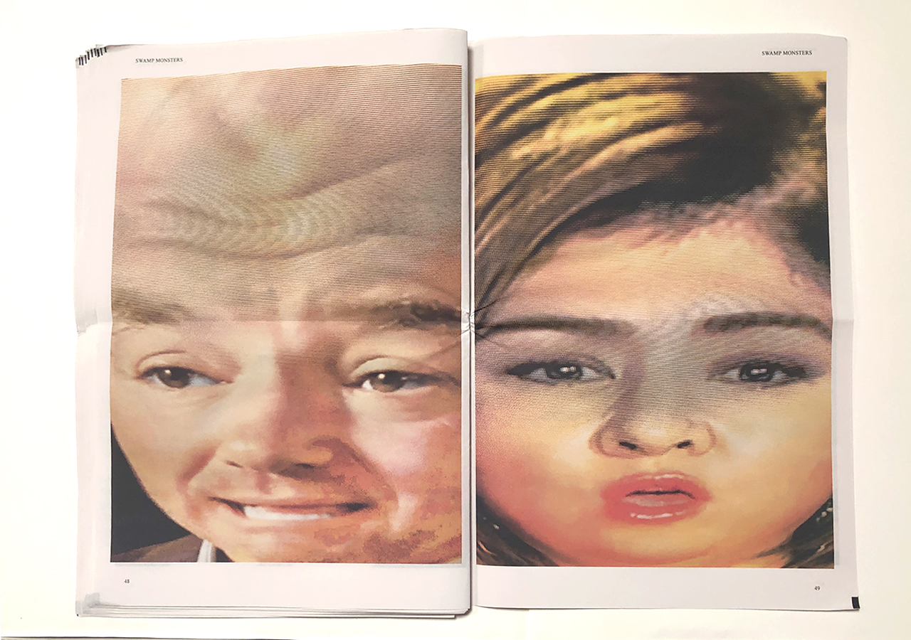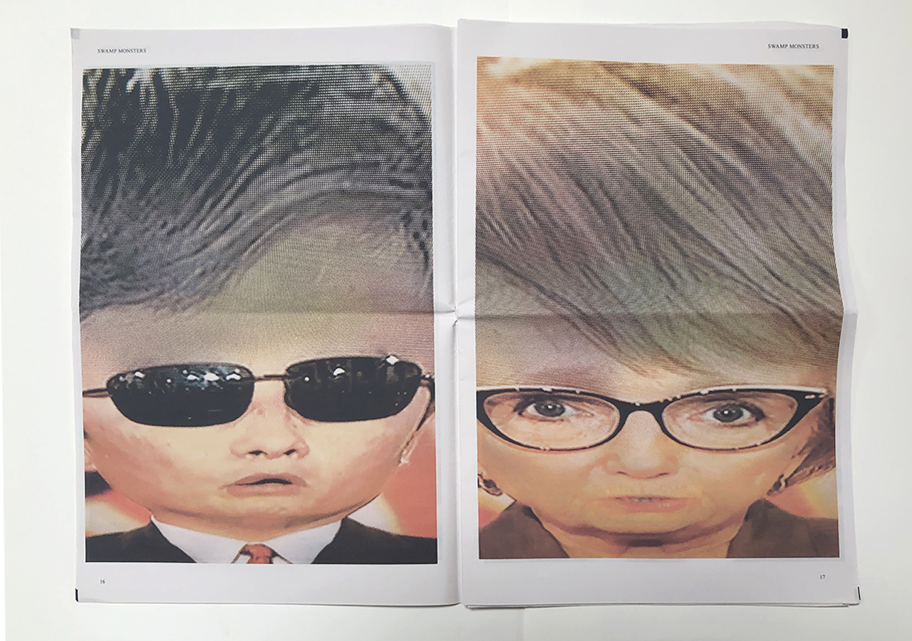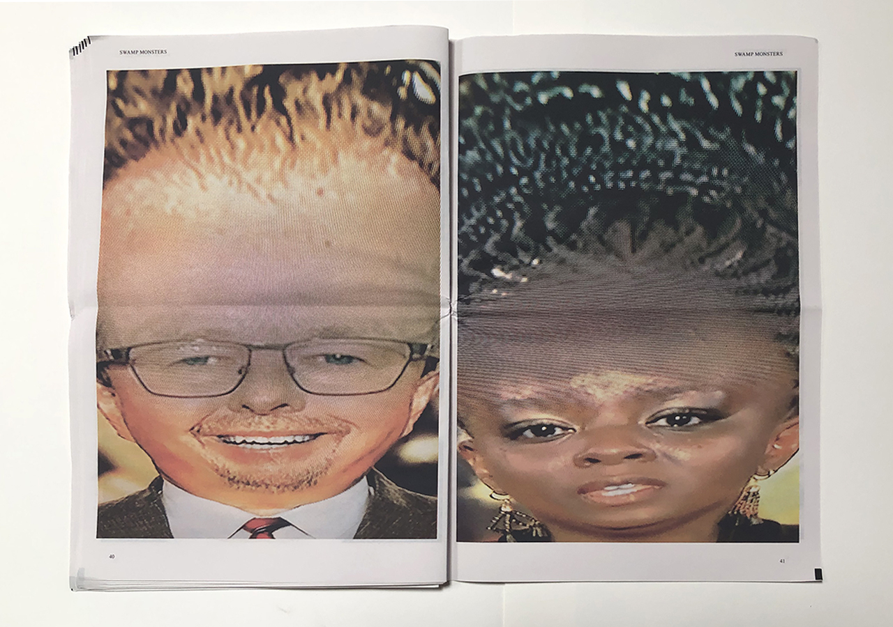 The Ice Plant (Los Angeles) and Spaceheater Editions (Tucson) announced the co-publication of Swamp Monsters on September 21, 2020, just three and a half weeks after these photographs from the 2020 Republican National Convention were taken. Swamp Monsters is a limited newsprint edition of 666 copies and commemorates the historically frightful 2020 Republican National Convention (August 24-27, 2020) with a series of photographs made by Philip Zimmermann as the spectacle unfolded on the television screen. This rogue's gallery of hideous video portraits was printed in Paris, France by printnewspaper.com in full color in an unbound tabloid newspaper format. Many thanks to Clif Meador of the Studio of Exhaustion for suggesting the title.