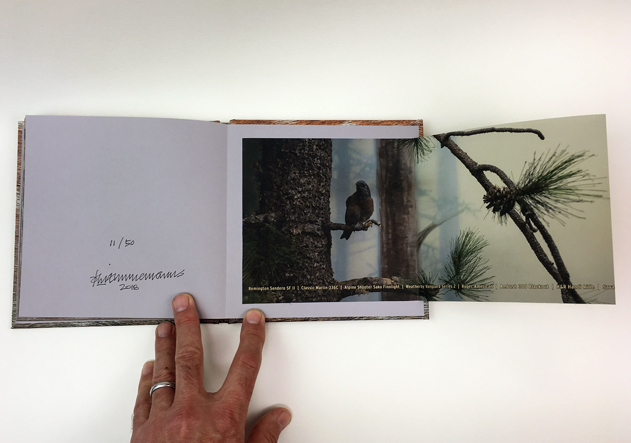 This edition was printed in an edition of fifty and they are signed and numbered. The inside text block and cover were printed by HP Indigo digital printing on archival Mohawk Superfine. The Ex Libris book plate in the front, and the accordion 'arsenal' section at the rear of the book, were printed by archival inkjet pigment on acid-free French Paper Co. paper. The book dimensions are 7" x 7" x 5/8" (17.75cm x 17.75cm x 1.5cm). The book has 68 pages, and is hardcover bound, and is priced at $125.